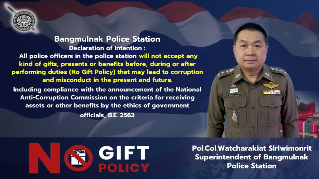 วันที่ 24 ธ.ค.67 เวลา 09.00 น. พ.ต.อ.วัชรเกียรติ ศิริวิมลฤทธิ์ ผกก.สภ.บางมูลนาก พร้อมด้วยข้าราชการต