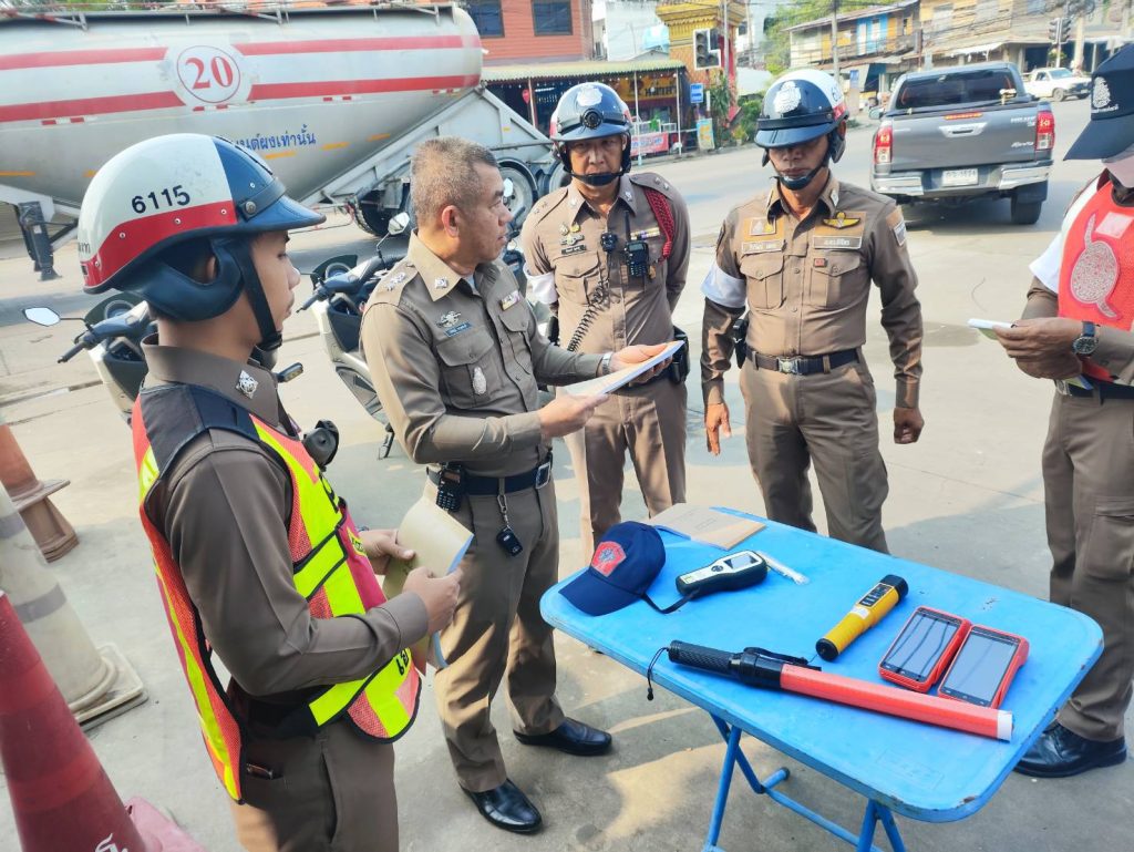 ตรวจเครื่องแต่งกายและอุปกรณ์ที่ใช้ในการปฏิบัติงานของชุดจราจร