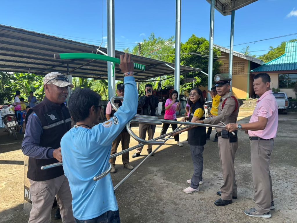 การฝึกยุทธวิธีการระงับเหตุบุคคลคลุ้มคลั่งด้วยไม้ง่าม อบต.ภูมิ